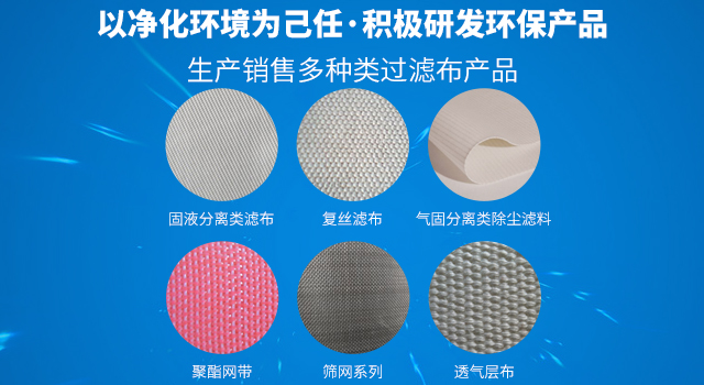 主要產(chǎn)品:主要產(chǎn)品有國際先進(jìn)的德國多尼爾織機(jī)生產(chǎn)的滌綸濾布,丙綸濾布,單絲濾布,透氣層布,各種篩網(wǎng),滌綸針刺氈,丙綸針刺氈,芳綸針刺氈,玻纖覆膜濾袋,聚酯網(wǎng)帶等產(chǎn)品,主要應(yīng)用于制藥、化工、染料、鋼鐵、建筑、治鐵、化工、陶瓷、水泥、地質(zhì)、礦產(chǎn)等行業(yè)。